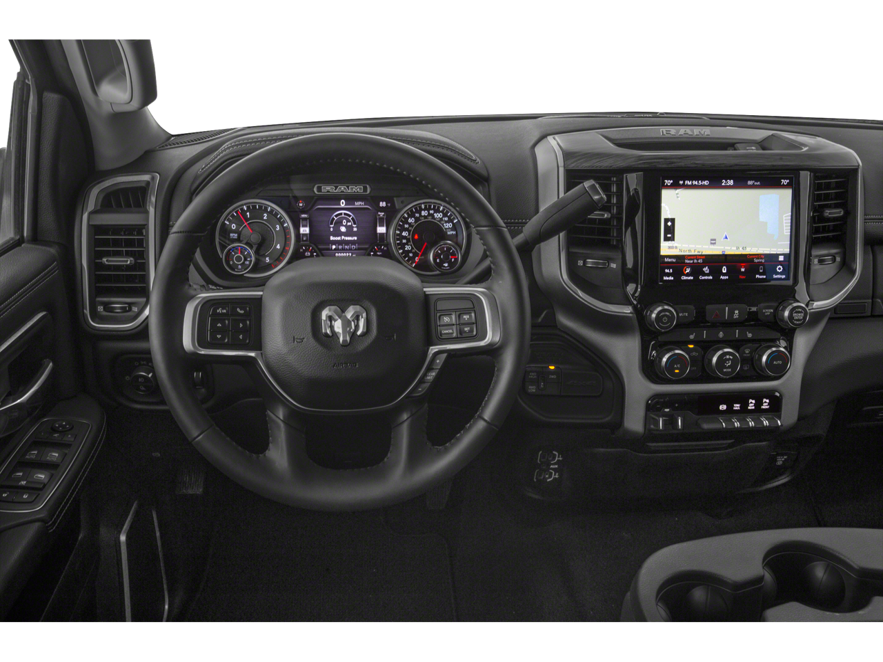 Quick Order Package 2HH Laramie. Laramie Level 1 Equipment Group: Remote Tailgate Release; Auto High Beam Headlamp Control; Blind Spot and Cross Path Detection; Rain Sensitive Windshield Wipers; Power Adjustable Pedals with Memory; Foam Bottle Insert (door Trim Panel); 2nd Row in Floor Storage Bins; Radio/driver Seat/mirrors/pedals Memory; Ventilated Front Seats. Towing Technology Group: Center Stop Lamp with Cargo View Camera; Surround View Camera System; Blind Spot and Cross Path Detection; Trailer Reverse Guidance. Uconnect Radio 12.0 with Navigation. Blind Spot and Cross Path Detection. Spray in Bedliner. Leather Trimmed Bucket Seats. Anti-Spin Differential Rear Axle. Center Stop Lamp with Cargo View Camera. Instrument Panel Mounted Auxiliary Switches. Diamond Black Crystal PC. Diamond Black Crystal PC. **Equipment listed is based on original vehicle build and subject to change. Please confirm the accuracy of the included equipment by calling the dealer prior to purchase.**