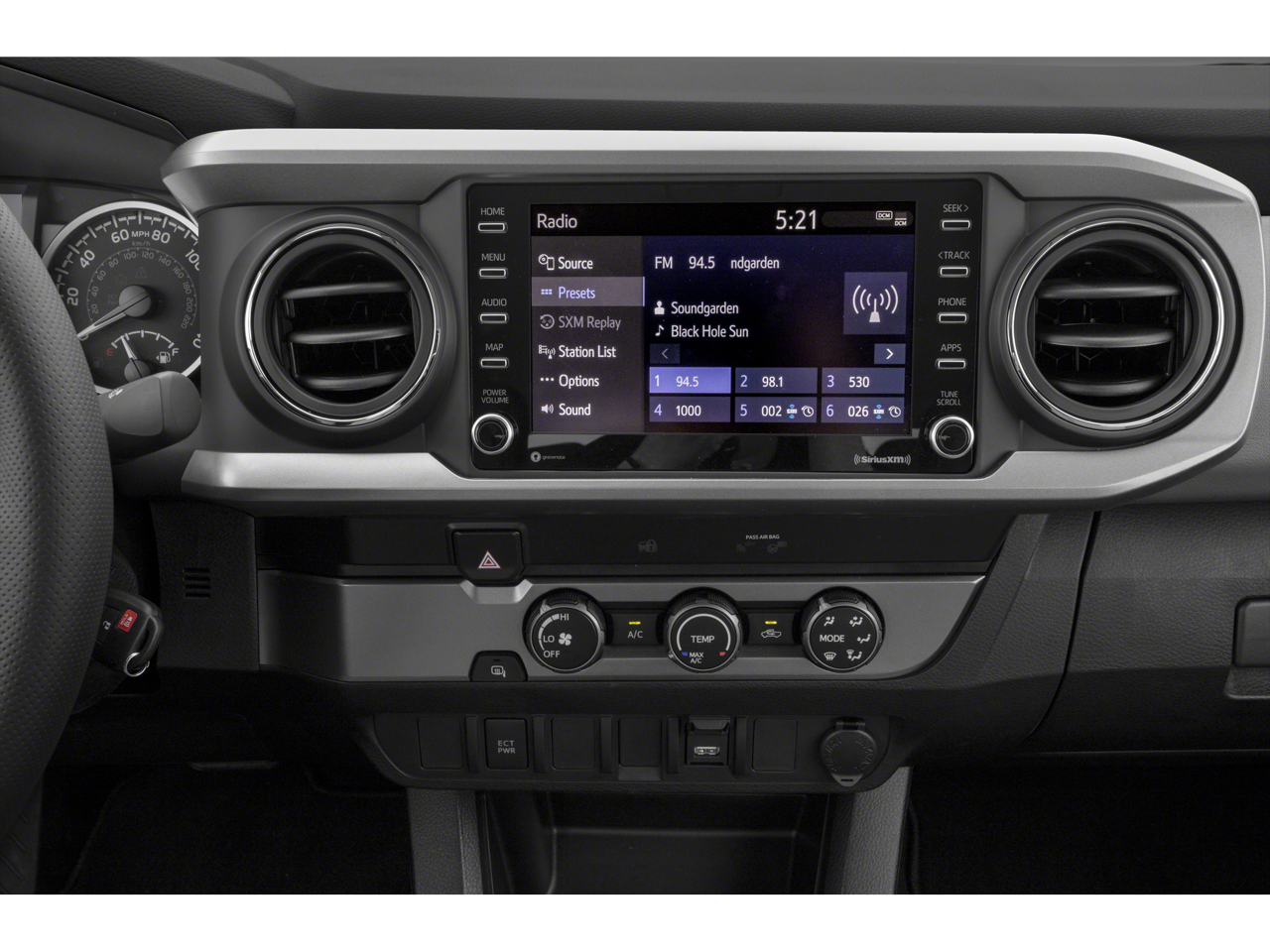 It offers Android Auto for seamless smartphone integration. Apple CarPlay: Seamless smartphone integration for this small pickup - stay connected and entertained on the go! Protect this small pickup from unwanted accidents with a cutting edge backup camera system. Bluetooth® technology is built into it, keeping your hands on the steering wheel and your focus on the road. This unit offers Automatic Climate Control for personalized comfort. Set the temperature exactly where you are most comfortable in this unit. The fan speed and temperature will automatically adjust to maintain your preferred zone climate. This 2021 Toyota Tacoma is rear wheel drive. The vehicle has a V6, 3.5L high output engine. This model projects refinement with a racy metallic gray exterior. This unit has fog lights for all weather conditions. Enjoy the tried and true gasoline engine in this model. The high efficiency automatic transmission shifts smoothly and allows you to relax while driving.