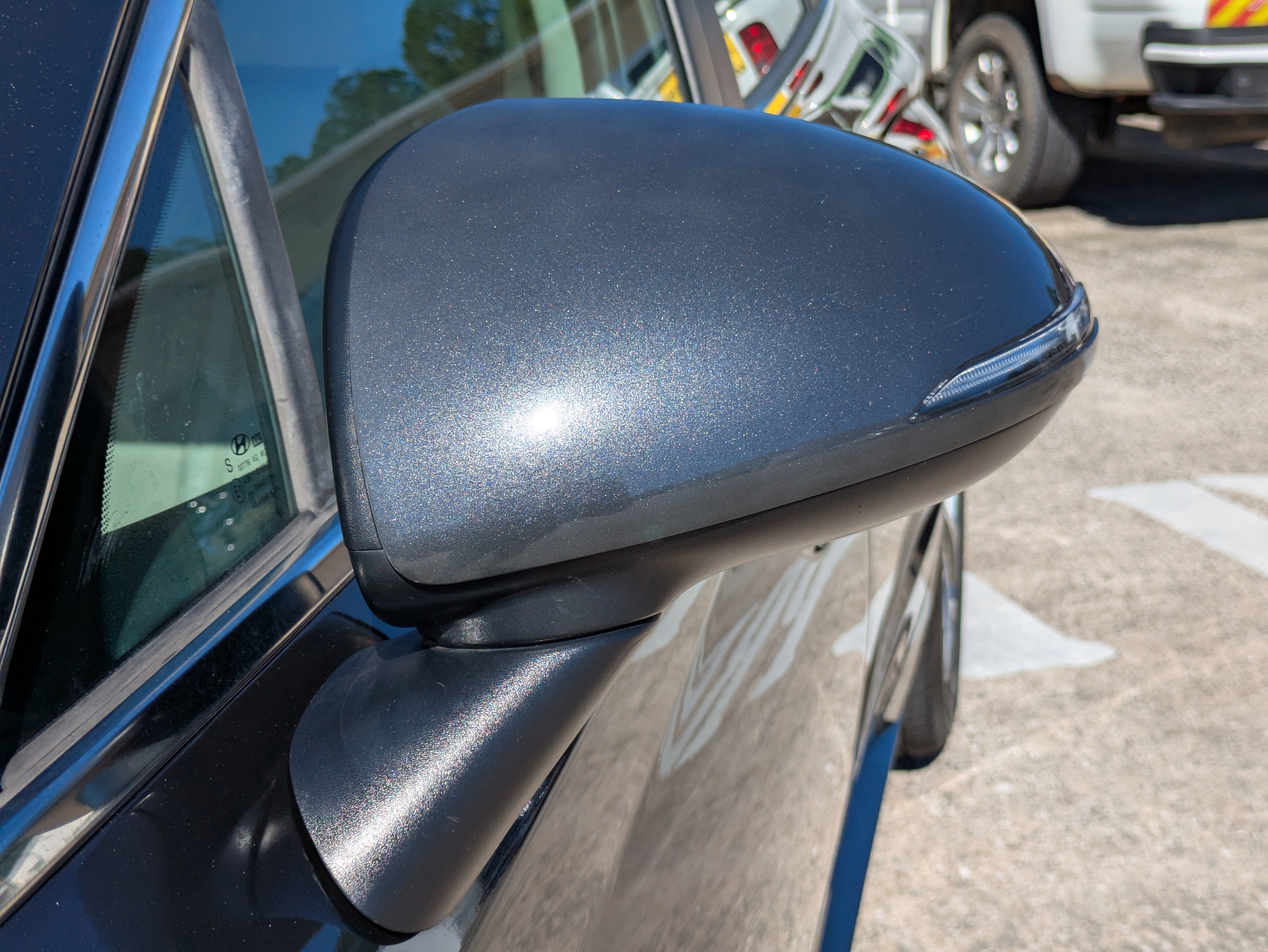- Body-color heated, driver-side auto-dimming power-folding outside mirrors with integrated turn signal indicators