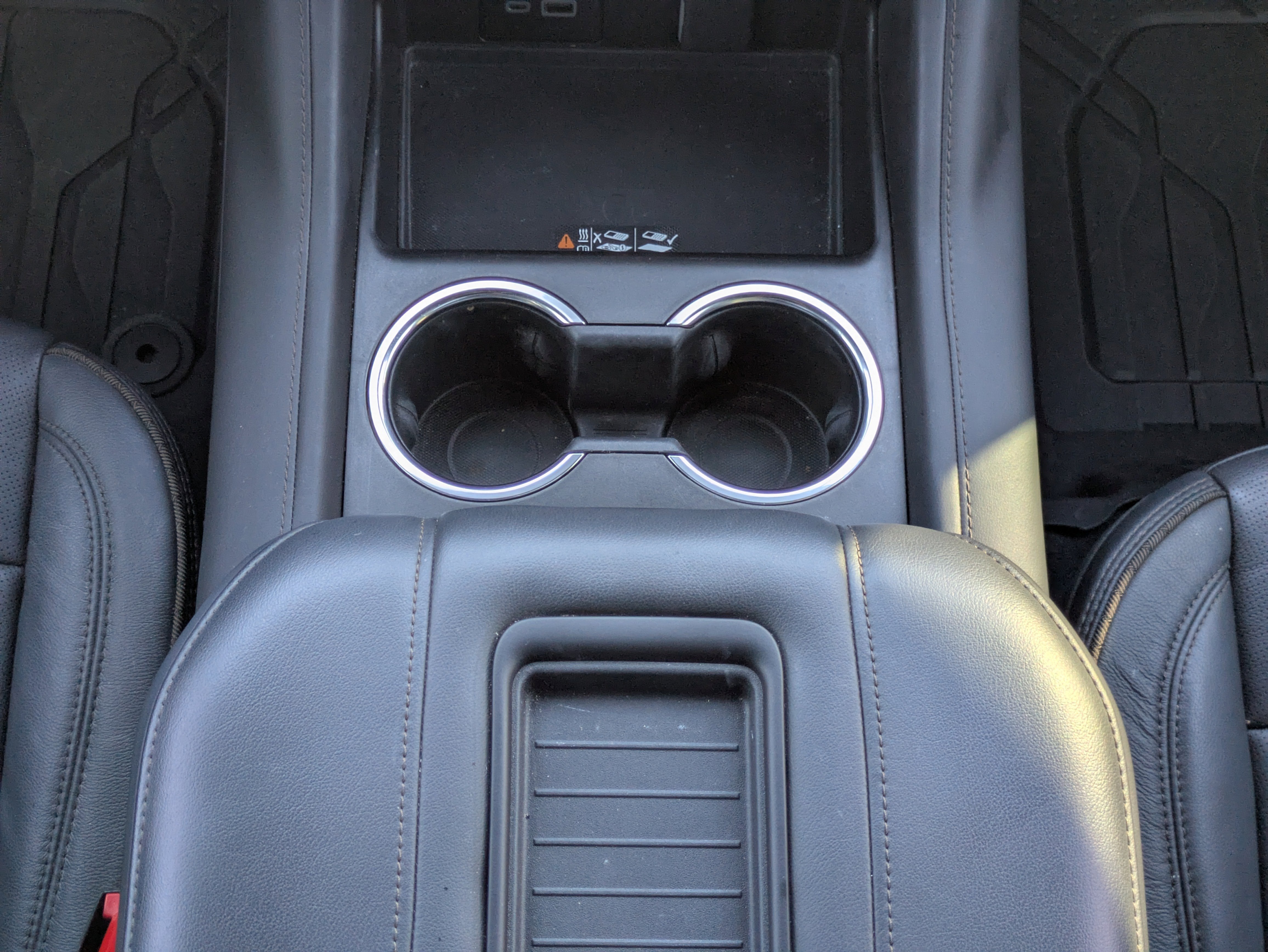 - Console, floor, power-sliding center with drawer, secure storage, manual sliding armrest and cup holders for second row; deletes (USR) 2 USB data ports within center console (Deleted when (ATT) second row power 60/40 split-folding bench seats are ordered.)